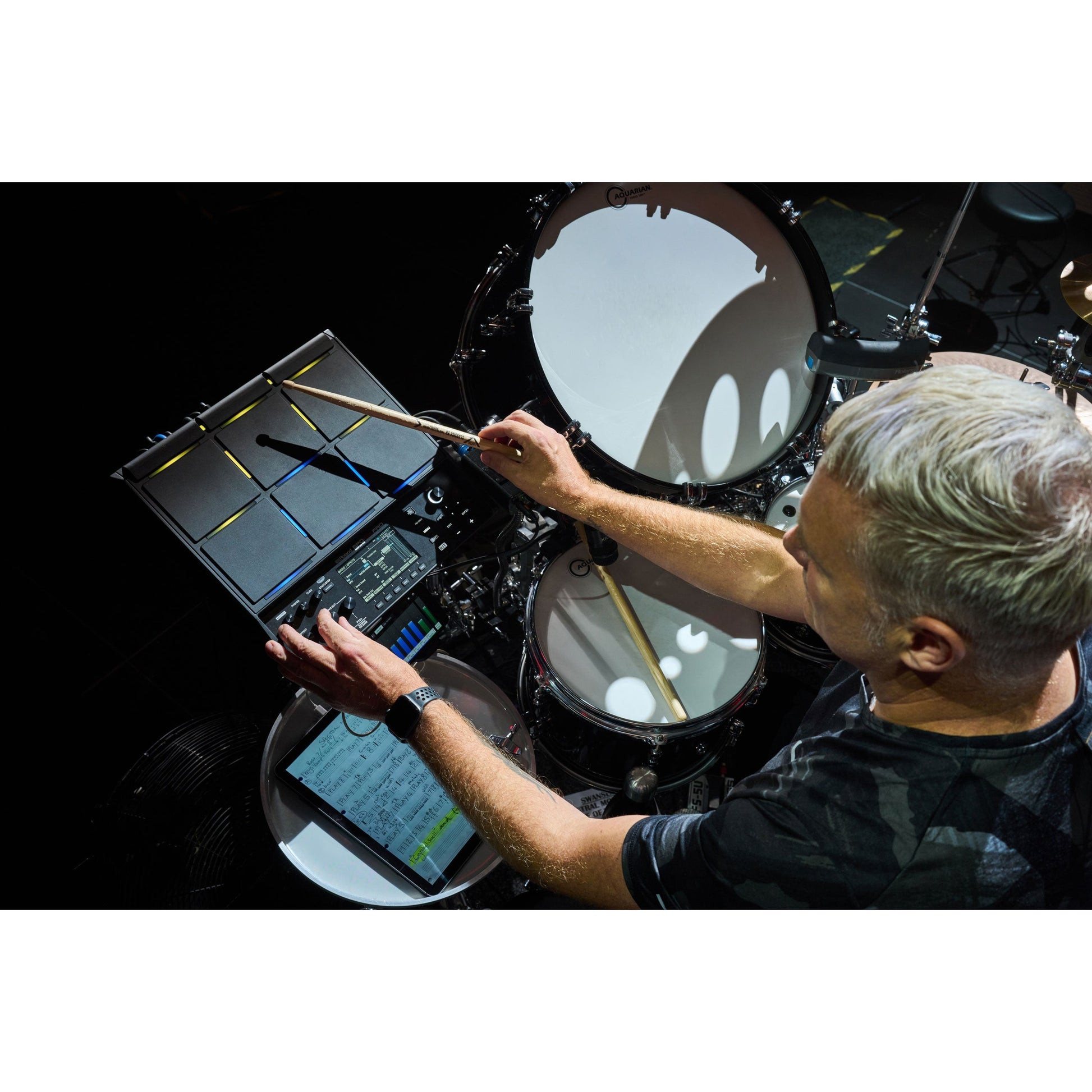 - Nine pads with Roland's advanced trigger technology, including six large pads and three shoulder pads in the top row