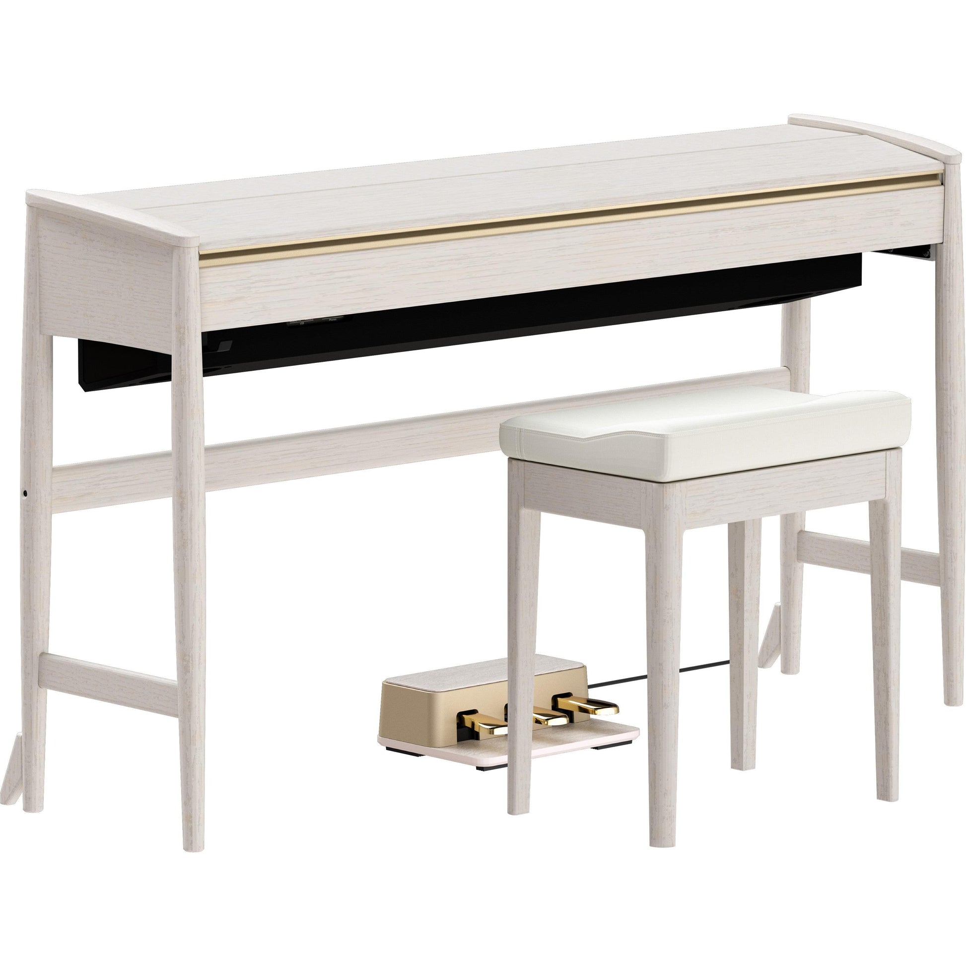 Den medfølgende KIYOLA-bænk er udviklet med samme omhu som selve klaveret. Den karakteristiske buede form fremmer en god siddestilling, mens den brede siddeflade fordeler vægten jævnt og gør spillet komfortabelt – også over længere tid.
