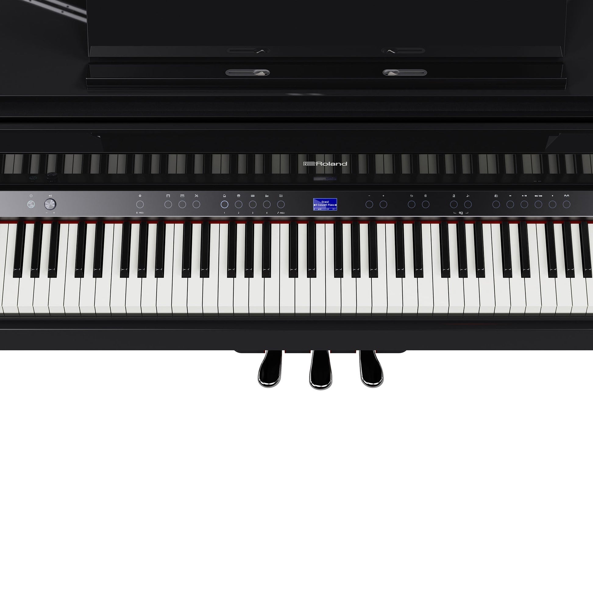 - Bevægelige tangenter til selvspillende concert med GP-9M'erens indbyggede sangbibliotek, MIDI-filer gemt på USB-flashmedier og sange downloadet fra Roland Cloud via Roland Piano App'en